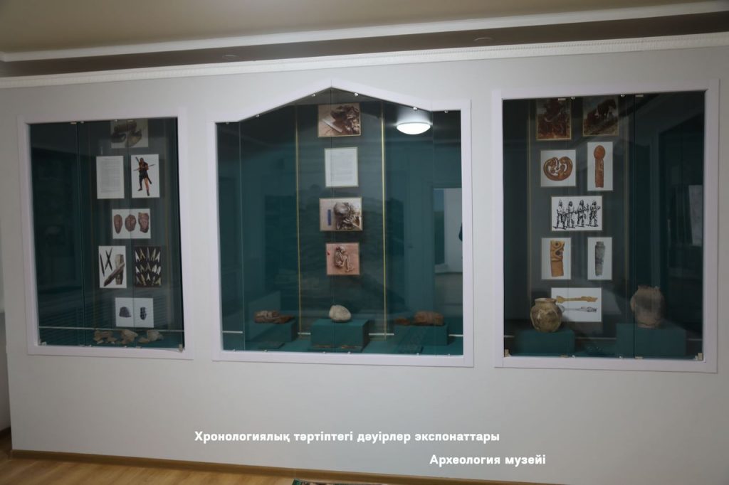 Археология музейінде – Экспозициялық диорамалар, Археологиялық хронология негізіндегі жерлеу орындары, Ортағасырлық қалашық бекінісі қабырғасының үлгісі, Археологиялық хронология негізіндегі балбал тастардың түрлері көрмеге қойылған.