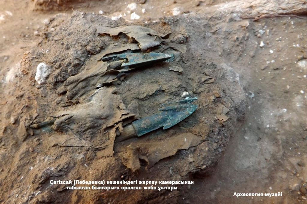Қоладан жасалған жебе ұштары. Сегізсай (Лебедевка) кешенінде археологиялық қазба жұмыстары кезінде табылды.