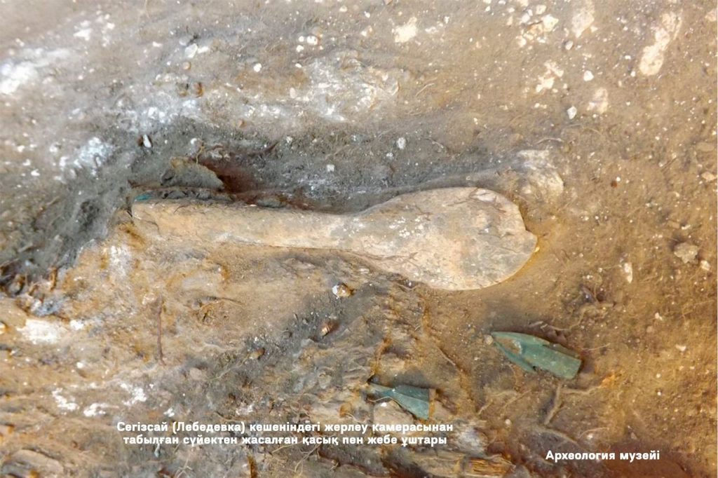 Сүйектен жасалған қасық. Сегізсай (Лебедевка) кешенінде археологиялық қазба жұмыстары кезінде табылды.