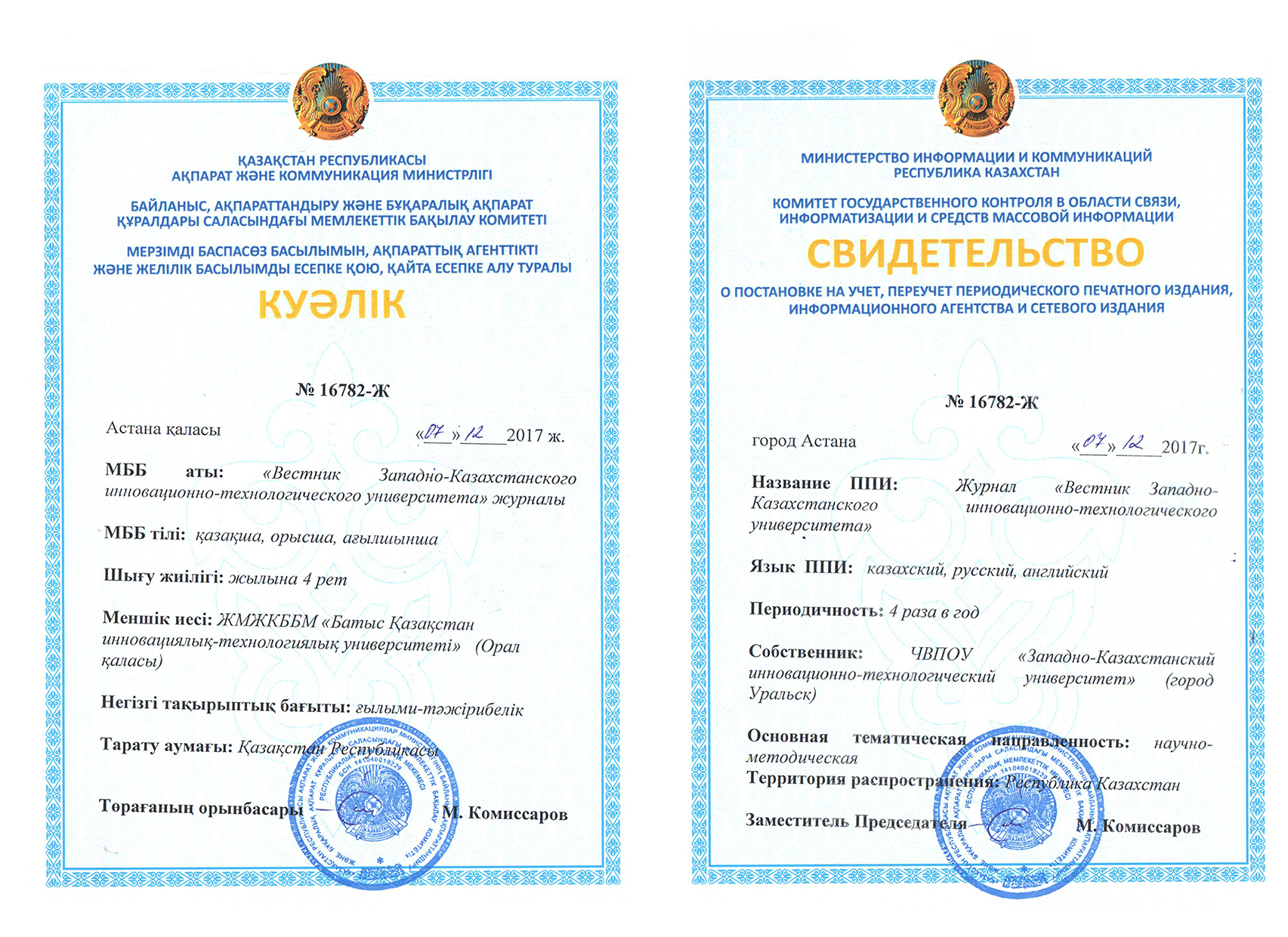 Свидетельство “БҚИТУ хабаршысы” жүктеу