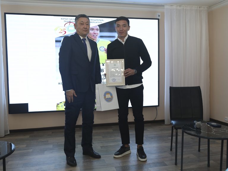 Кездесу барысында танымал футболшы отандық футболдың деңгейі мен басқару жолының өсу кезеңдері, жоғары мақсатқа қол жеткізу үшін қадамын жаңа ғана бастаған әр жас футболшының міндеті, ұлттық құраманың абыройы үшін ойнап, жанкүйерлердің құрметіне ие болудың маңызын түсіндірді. Шара барысында университет проректоры А.И.Абекешев университет қонағы, танымал спортшыға БҚИТУ ректоры Б.Т.Шакешевтың Алғыс хатын табыс етті.