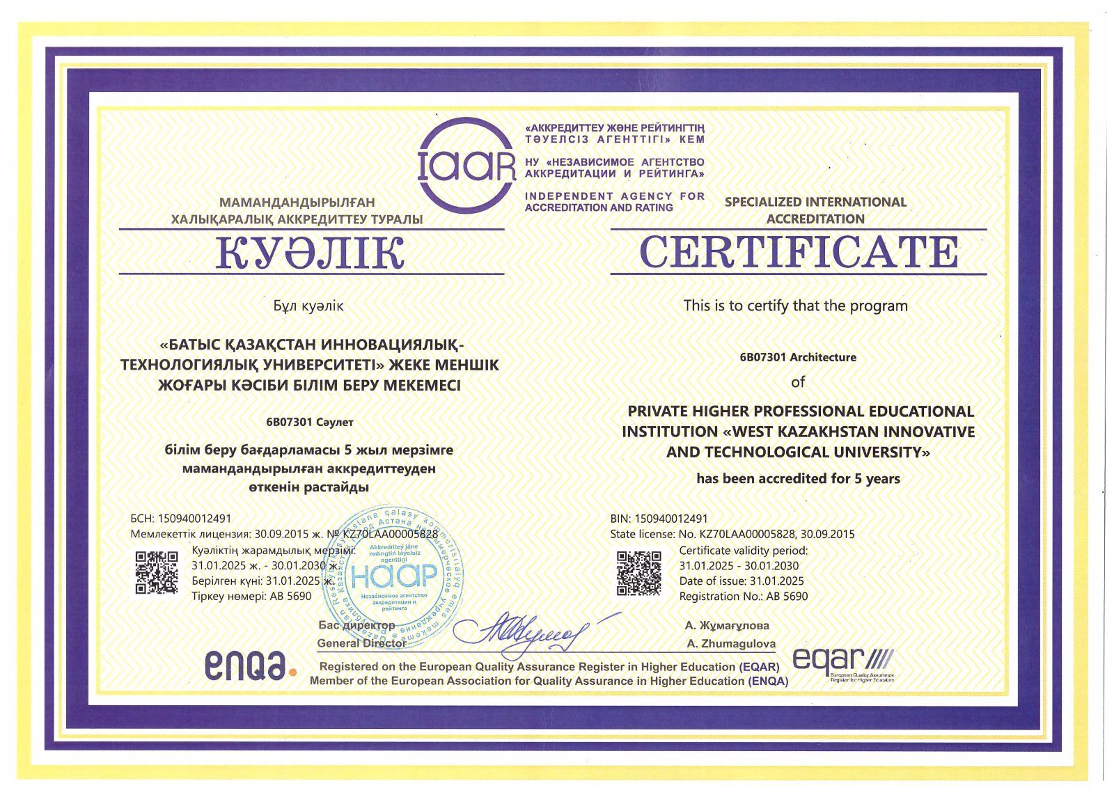 IAAR аккредитация сертификаты – “Сәулет”
