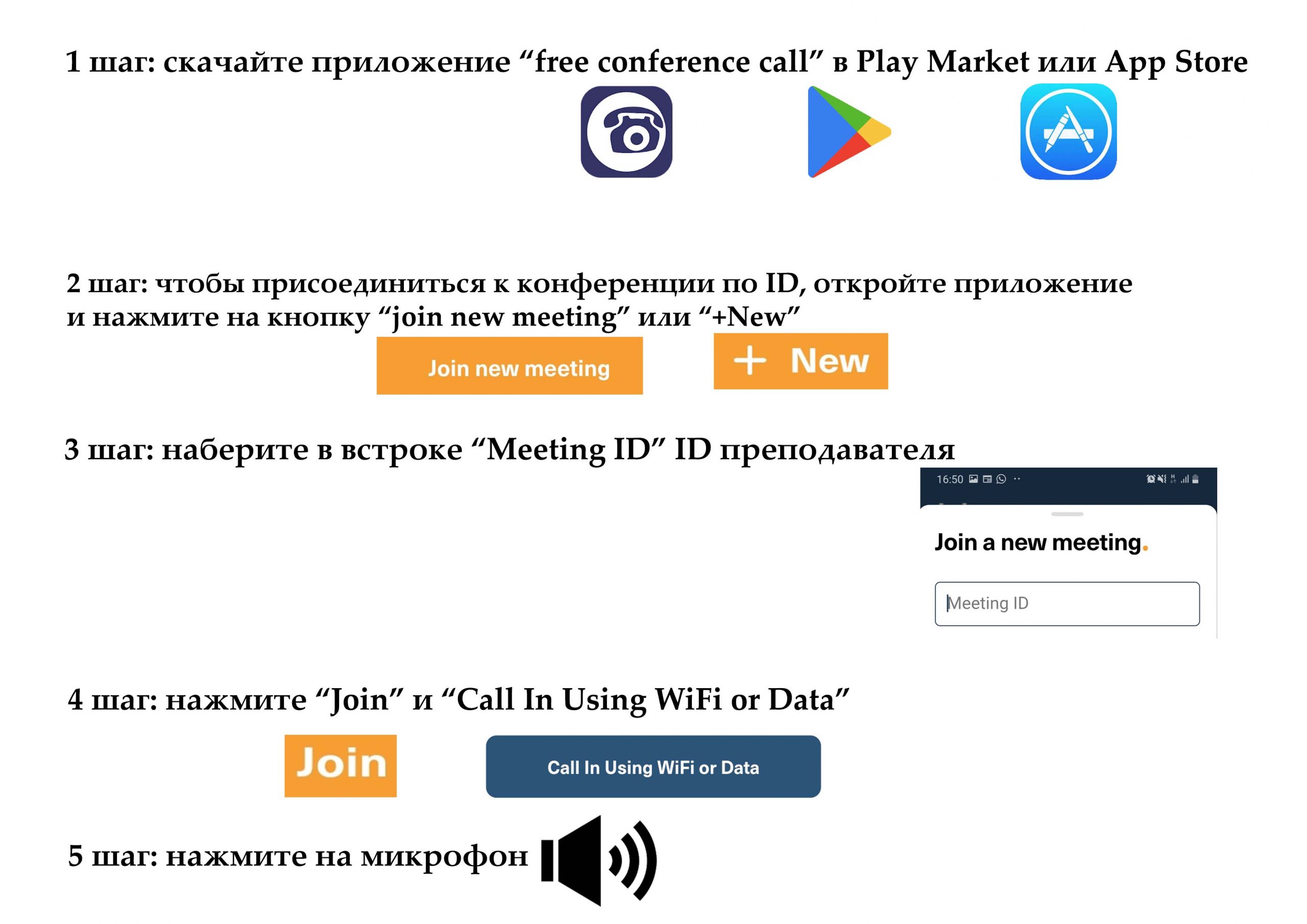 Онлайн занятия проводятся согласно расписания с использованием сервиса Zoom или FreeConferenceCall |