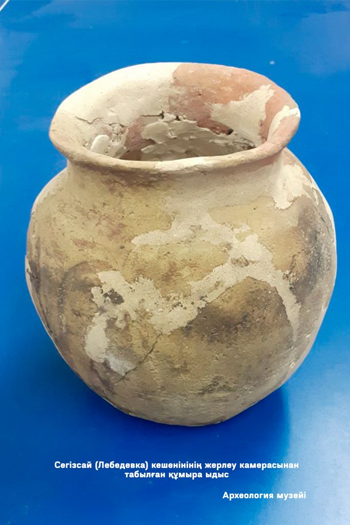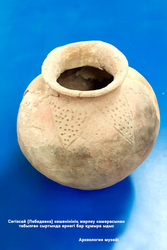 Керамикалық ыдыстар. Сегізсай (Лебедевка) кешенінде археологиялық қазба жұмыстары кезінде табылды.
