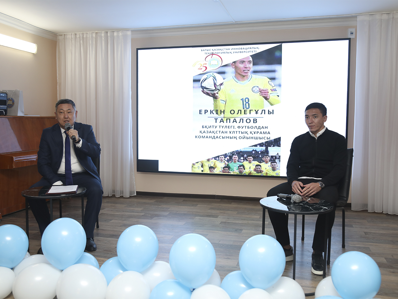 2023 жылғы 15-желтоқсанда БҚИТУ акт залында Батыс Қазақстан инновациялық-технологиялық университетінің 25 жылдығына арналған шаралар аясында университет түлегі, белгілі қазақстандық футболшы, Қазақстан ұлттық құрамасының ойыншысы Еркін Олегұлы Тапаловпен кездесу ұйымдастырылды. Бүгінгі күні Еркін Тапалов “Қызыл-Жар” клубының футболшысы және Қазақстан құрамасының жартылай қорғаушысы.
